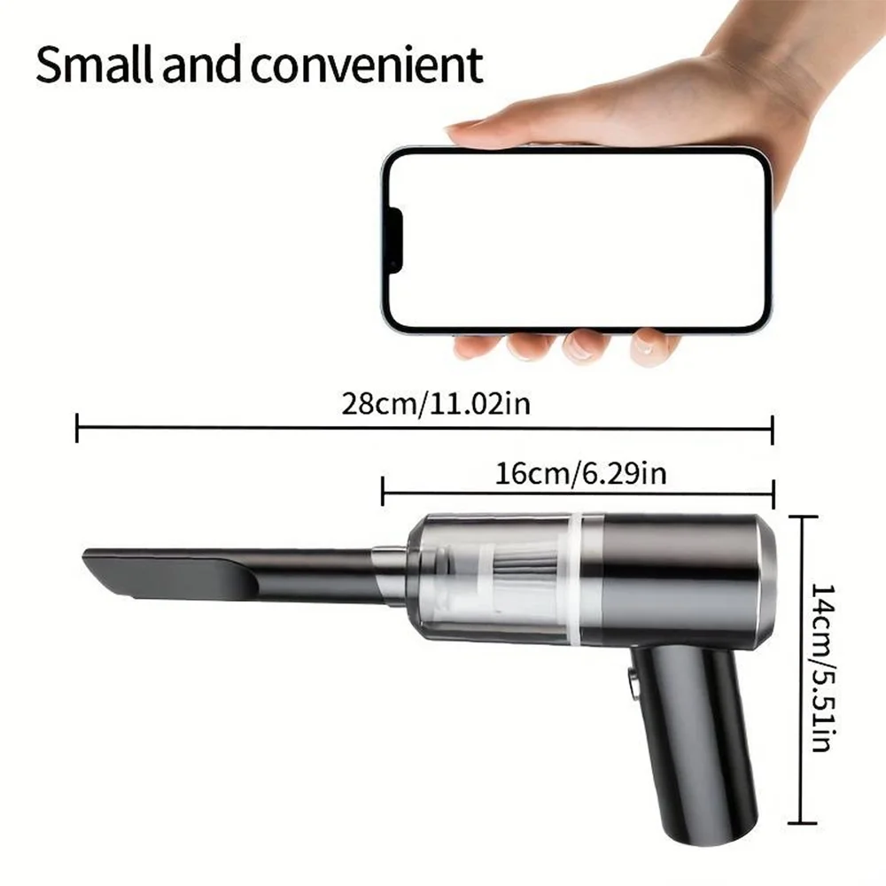 [Additional Features] The vacuum cleaner features a 1200mAh battery capacity, a washable filter for easy maintenance, and a clear dust cup that helps you know when it needs to be emptied. It also has a multi-functional design that allows it to be used not only as a vacuum cleaner but also as a simple inflatable tube, adding versatility to its use.
